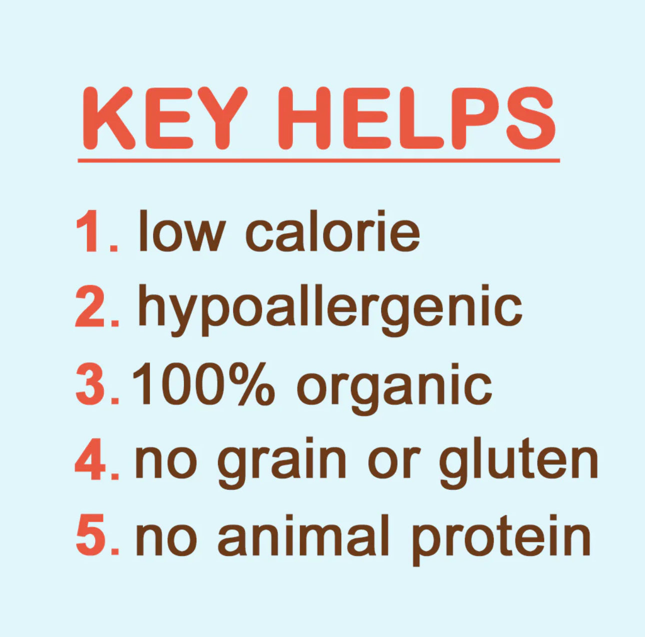 No animal protein. Excellent for dogs on a limited protein diet or single source protein diet (ie: dogs with kidney, liver issues, or allergies).