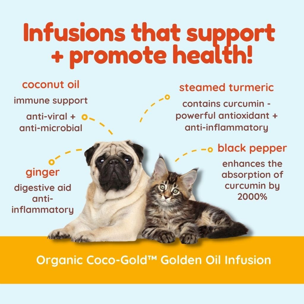 CocoTherapy Coco-Gold is specially formulated with our animals in mind. An expertly blended nutritional supplement for enhanced well-being, this unique formula is made with CocoTherapy’s therapeutic-grade Organic Virgin Coconut Oil, organic turmeric, organic ginger and organic black pepper. Often referred to as golden paste, it’s commonly used in traditional Ayurvedic medicine and known for its potential health benefits. CocoTherapy Coco-Gold is USDA-Certified Organic and human-grade.